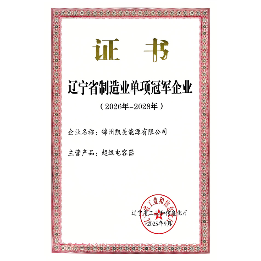 錦州凱美能源有限公司再次榮獲"遼寧省制造業(yè)單項冠軍企業(yè)"稱號,實現(xiàn)連續(xù)獲評。這是公司在超級電容器領(lǐng)域深耕近20年、繼國家級專精特新"小巨人"等榮譽后,獲得的又一省級權(quán)威認(rèn)可,充分彰顯了公司在細(xì)分市場的領(lǐng)先地位和核心競爭力。